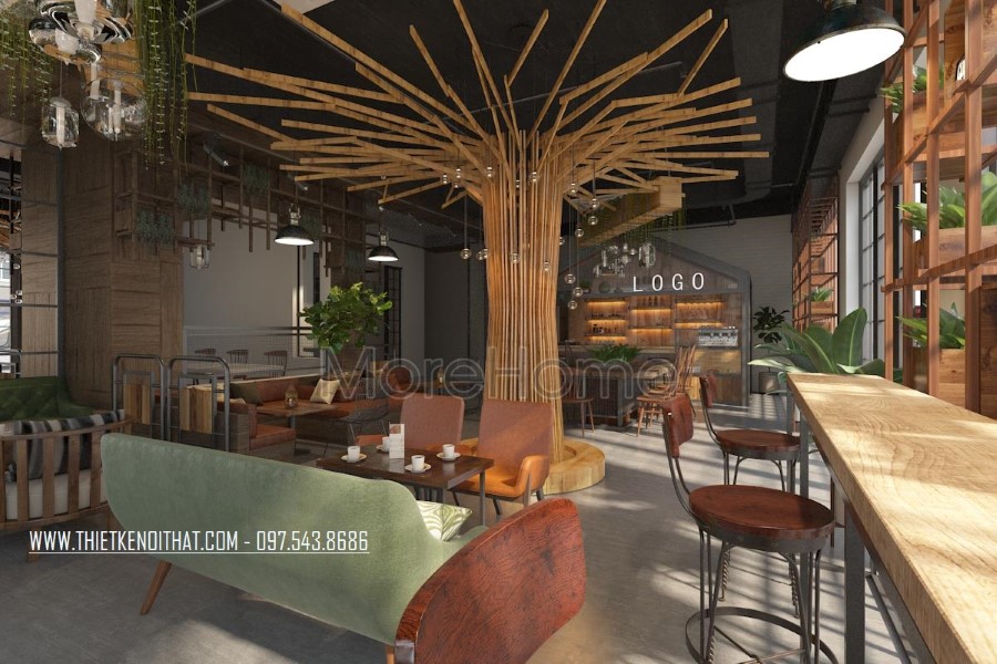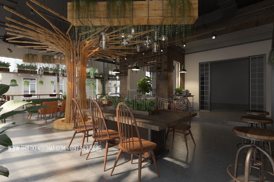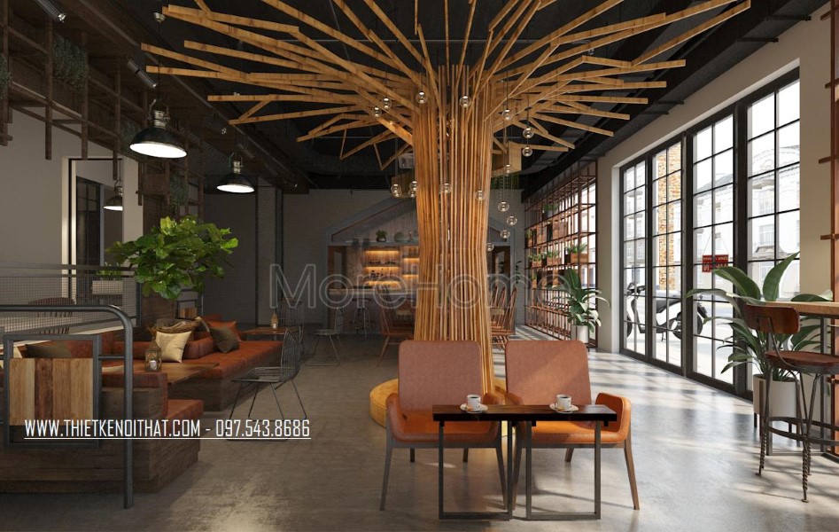 Thiết kế quán cafe với nội thất gỗ hiện đại khách sạn cao cấp